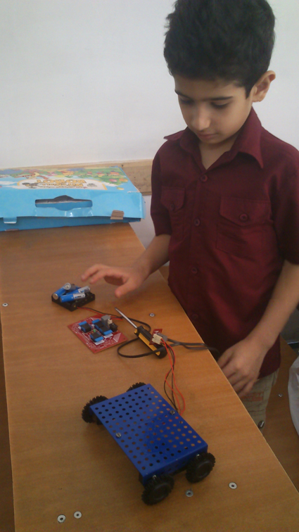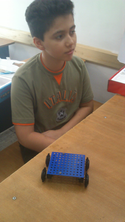 امروز با تشکیل جلسه هفتم کلاس رباتیک، بچه ها عملاً نمایش اولیهای از ربات خود را دیدند. در واقع بچهها با نحوه سوار کردن گیربکس روی شاسی آشنا شدند. البته از خود بچهها خواسته شد تا ببینند چطور میشود گیربکس را روی شاسی سوار کرد. که خوشبختانه با ایدههای جدیدی از طرف بچهها مواجه شدیم. چون حداقل خود ما آنها را به شیوهی دیگری میبستیم. این نکته جای خوشحالی دارد.